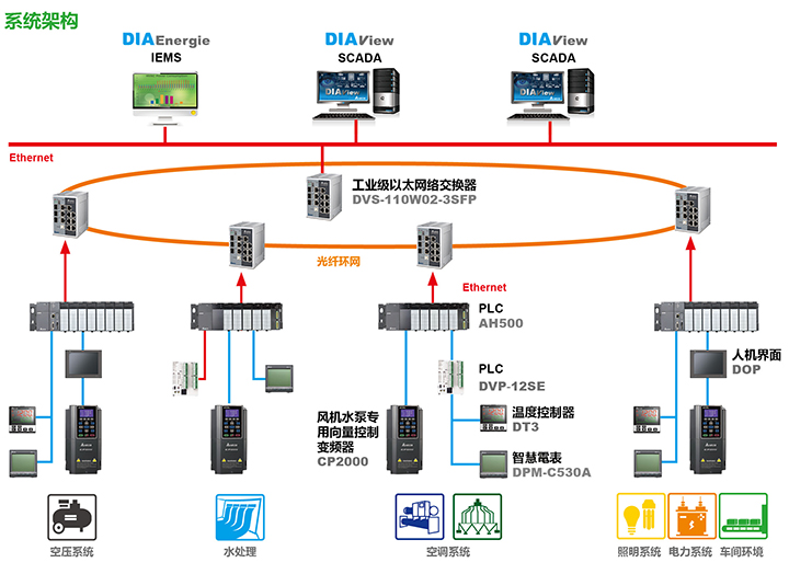 臺達 DIAView SCADA (Supervisory Control And Data Acquisition) 工業組態系統是一套架構在 PC 計算機上具有實時系統監控、數據擷取和分析功能的自動化管理系統,可協助管理者采集整廠的數 據及規劃產線可視化的管理接口,讓客戶輕松實現遠程監控、系統管理和全廠信息化管理,提高工 廠整體生產效益,可廣泛應用于機械、冶金、水處理、 HVAC、包裝、供暖、環保監測、紡織、能源、 交通、以及智慧建筑等各種領域。