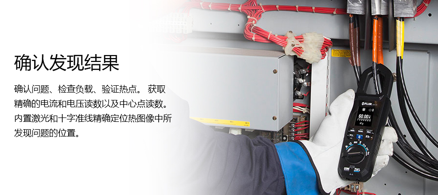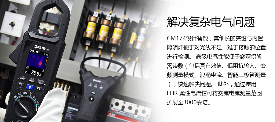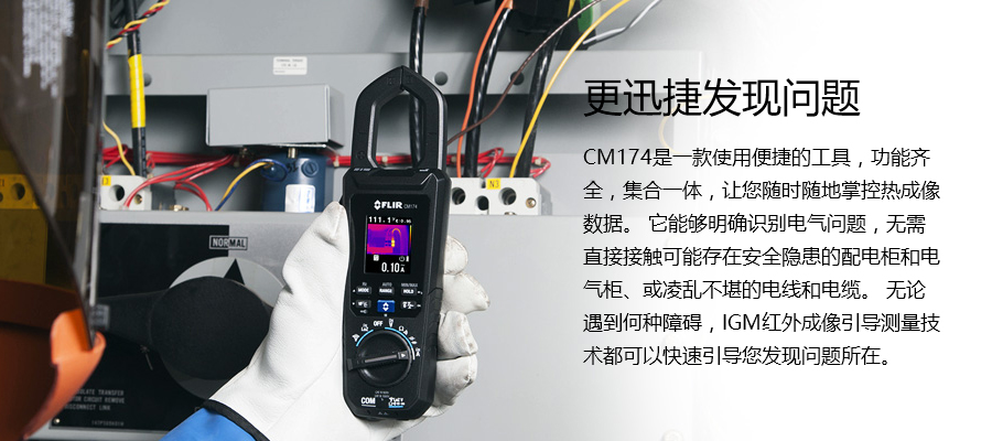FLIR CM174 600A交流/直流紅外成像數字鉗形表采用IGM紅外成像引導測量技術,是世界上首款鉗形表熱像儀二合為一的產品。它能快速引導用戶發現常規鉗形表無法識別的問題。得益于強大的紅外成像引導測量技術,CM174數字鉗形表能直觀引導用戶發現潛在電氣問題的精確位置,安全識別危險與未知問題。借助精確的電流與電壓讀數,以及中心點溫度讀數確認發現結果。本產品配備有細長的夾鉗,提高了檢測難以接觸區域的靈活性,其結構輕巧,可輕松放入口袋,便于隨身攜帶,隨時進行成像檢測。FLIRCM174是您電氣故障檢修的首選工具。