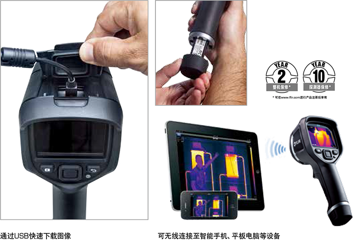 FLIR E4、E5、E6和E8紅外熱像儀功能強大、簡單易用且價格極 為經濟實惠,是建筑、電氣和機械應用領域的理想故障排除工具。 提供四種分辨率供選(從80×60到320×240紅外像素),可滿足您 對目標尺寸、工作距離和細節的所有需求。這幾款熱像儀均采用 MSX ? 技術,可提供非同一般的熱成像細節。具有Wi-Fi連接功能, 能通過FLIR Tools移動應用程序連接至智能手機和平板電腦,可從 任意地點輕松地分享圖像、發送報告,便于您更迅速地作出關鍵決 策。Ex系列熱像儀通過提供熱圖像助您發現隱藏的問題、獲得精 確的溫度測量結果,是老式紅外測溫儀理想、劃算的替代產品。