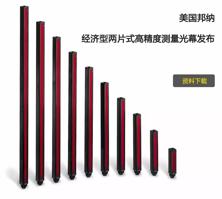 美國邦納A-GAGE? 兩片式Mini-Array系列測量光幕發布了9.5mm 分辨率的高性價比型號。 兩片 式的發射器和接收器方式為用戶提供簡化的接線方式,更加易于安裝和維護,而且無需單獨控制器。