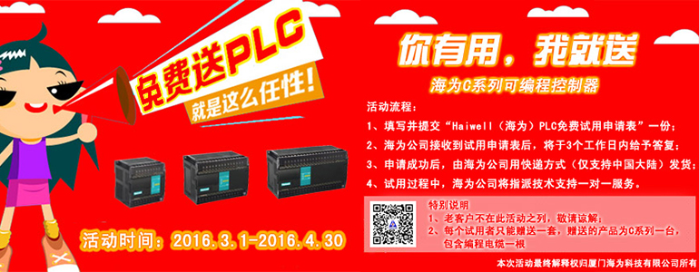 | 關(guān)注廈門海為官方微信號:“廈門海為”或者“haiwell_plc”,可及時收到我司最新免費(fèi)試用活動和申請成功的通知。分享文章到你的朋友圈還有機(jī)會獲得我司送出的獎品哦! |